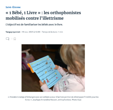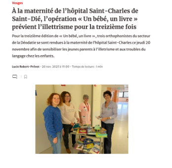 L’association OP64 (Orthophonie Prévention 64) organisera exceptionnellement l’action 1Bébé, 1Livre le 16 janvier 2026 car la maternité de Pau déménageait en novembre.