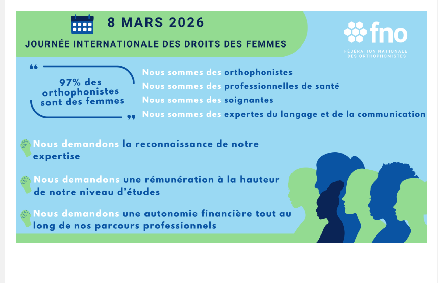 En ce 8 mars 2026, journée internationale des droits des femmes, la Fédération nationale des orthophonistes (FNO) s’associe aux nombreuses mobilisations en faveur de l’égalité entre les femmes et les hommes.