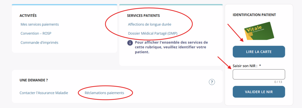 Depuis le même encart « Services patients », vous pouvez également accéder au