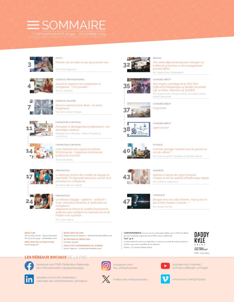 Retrouvez ici le sommaire des sommaires de la revue L’Orthophoniste !